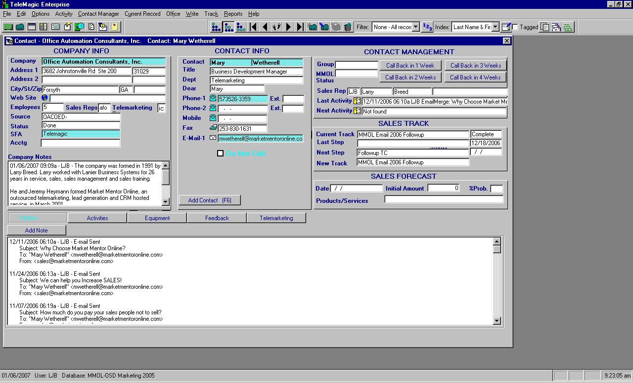 SALES VIEW - Contact Record